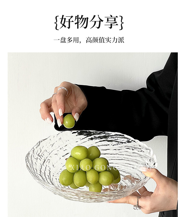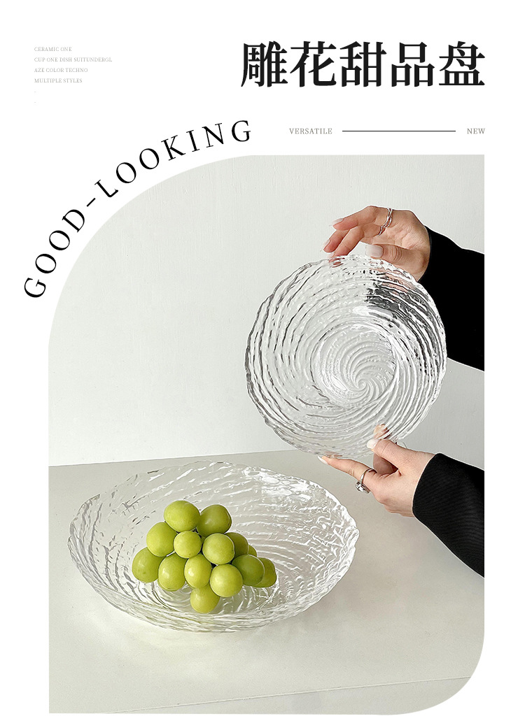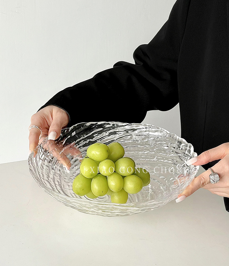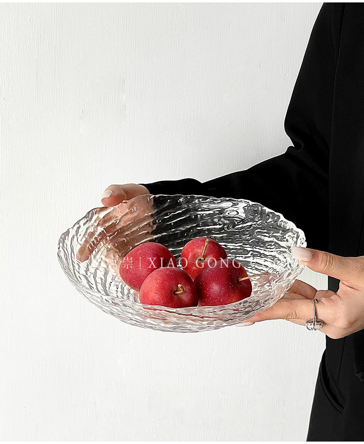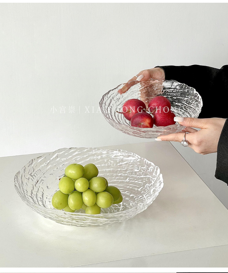 Yu Li Senior Sense Irregular Ice Grain Glass Bowl Fruit Tray Home Living Room Coffee Table Sugar Water Dessert Bowl Vegetable Sand
